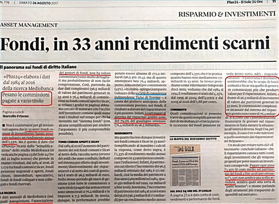 Causa principale delle lacune, degli alti rischi e dei rendimenti mediocri degli investimenti degli italiani.